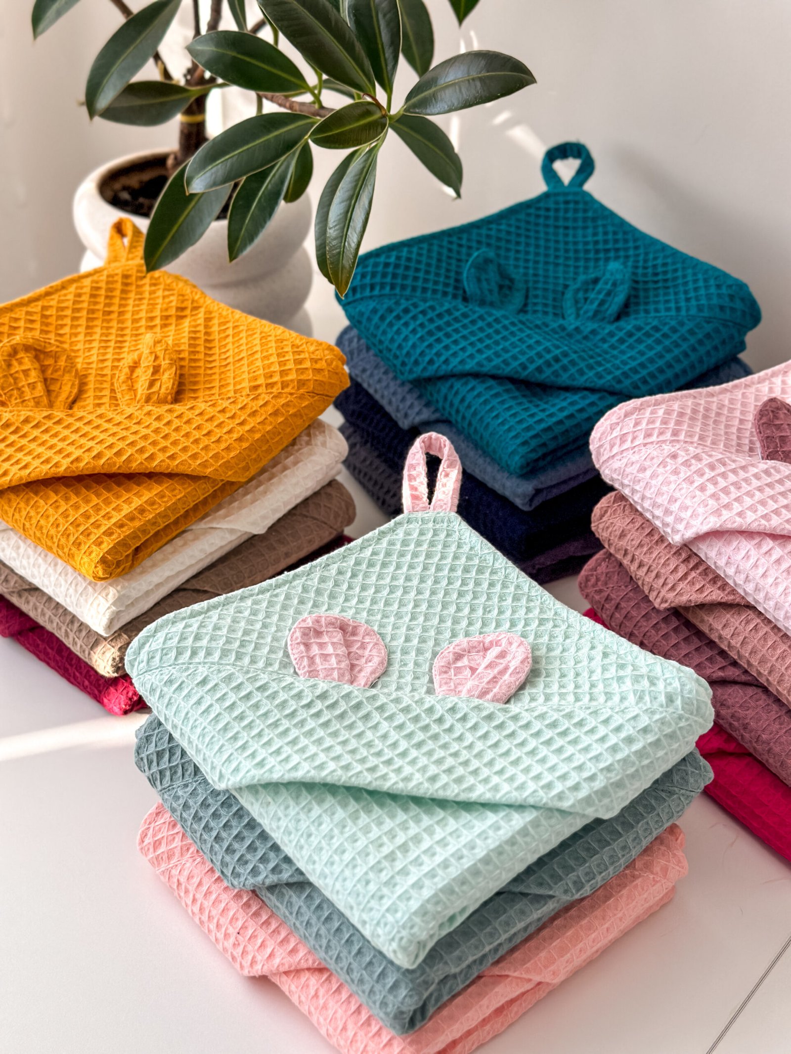 Medvilnės vafliuko rankšluostis kūdikiams – mėlynas Medvilnės vafliuko rankšluostis kūdikiams – mėlynas