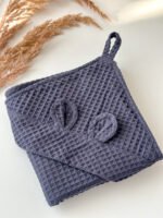 Medvilnės vafliuko rankšluostis kūdikiams – tamsi pilka