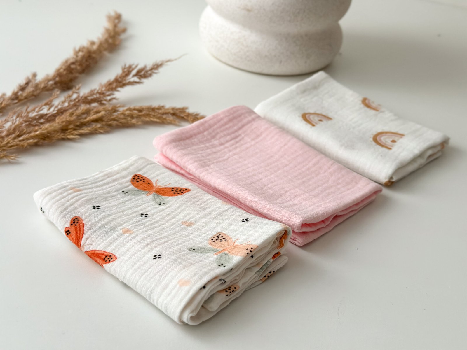 Muslino medvilnė yra gaminama naudojant aukščiausios kokybės medžiagas. Tai audinys be dirbtinių priedų, todėl jis ypač tinkamas naudoti kūdikiams ir mažiems vaikams bei yra pritaikytas jautriai jų odai. Kitas medvilninio muslino privalumas – atsparumas skalbimui. Jis ne tik kad nenusiskalbia, bet ir po kiekvieno skalbimo tampa dar minkštesnis ir malonesnis.