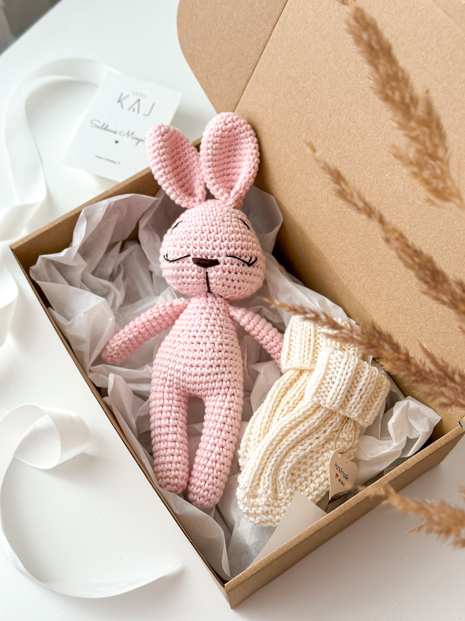 Nertas žaisliukas "Rožinė zuikutė" Nertas žaisliukas "Rožinė zuikutė"