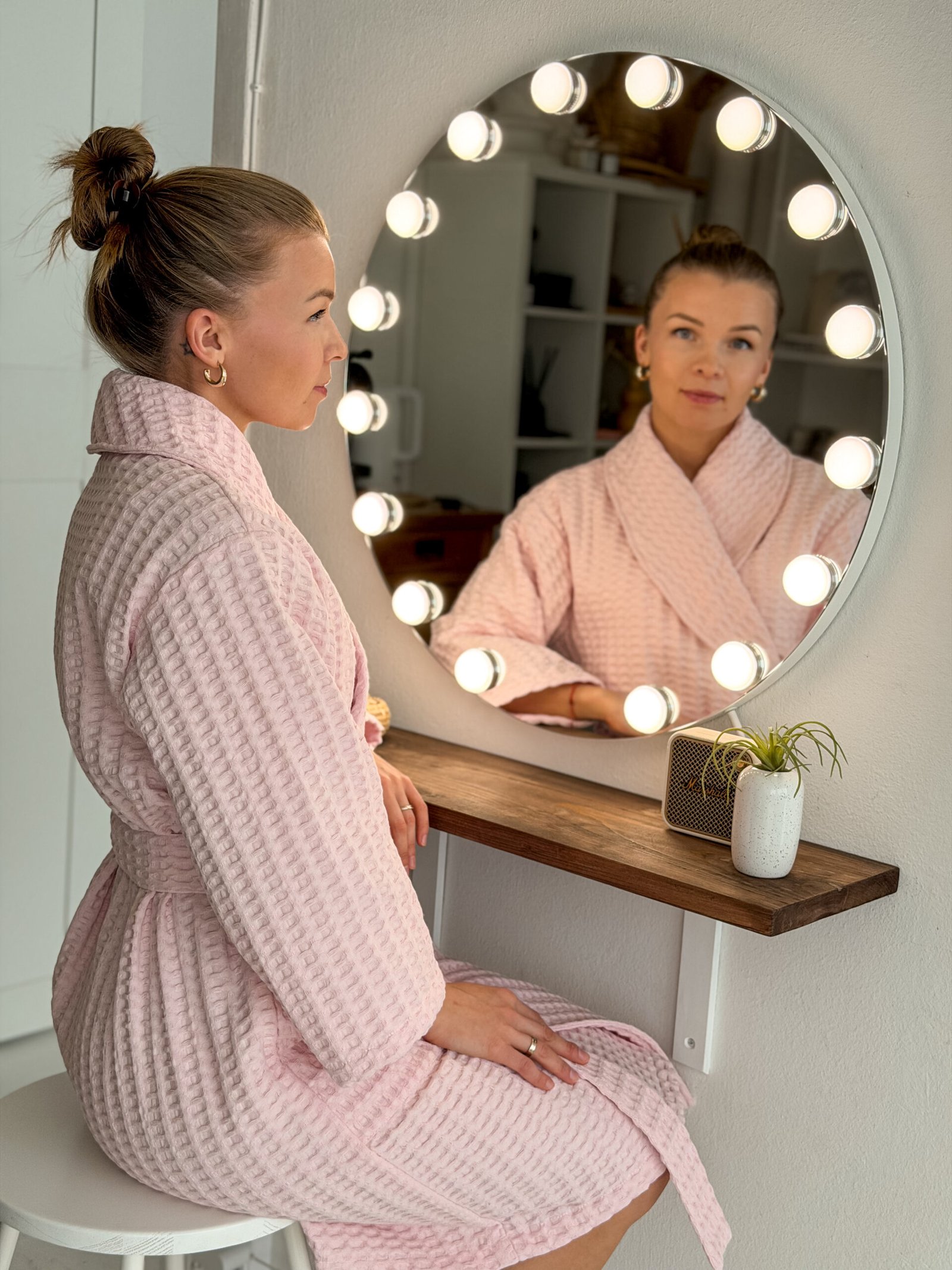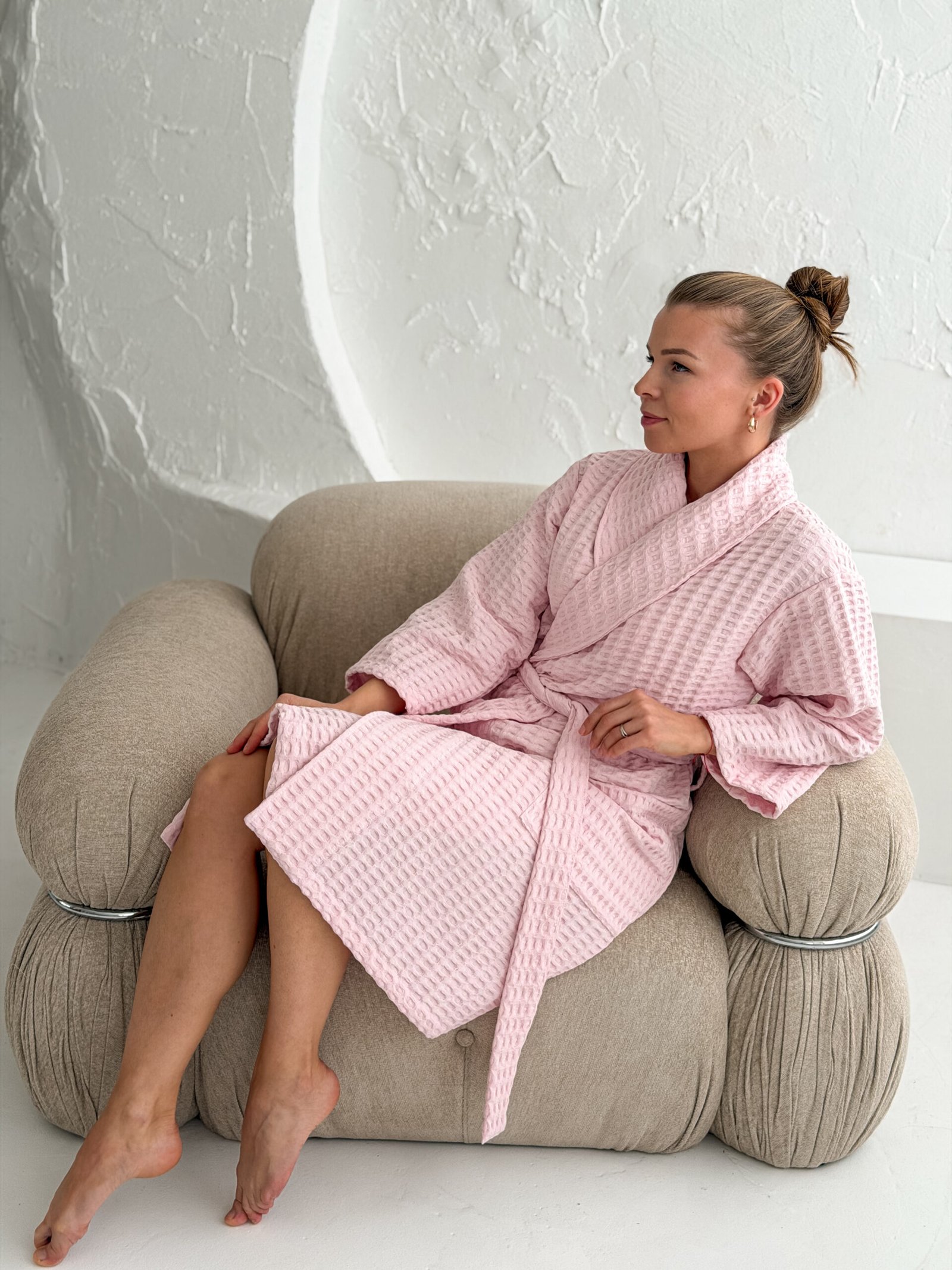 Atraskite kasdienio komforto ir stiliaus derinį su mūsų vafliniu chalatu, pagamintu iš aukštos kokybės pirmos klasės OEKO-Tex medvilnės. Išskirtinė tekstūruota audinio pynė užtikrina puikų drėgmės sugėrimą ir greitą džiūvimą, todėl idealiai tinka kasdieniam komfortui po dušo ar namų SPA ritualams. Audinys yra švelnus ir malonus odai, tačiau kartu patvarus ir lengvai prižiūrimas. Elegantiška apykaklė suteikia rafinuotumo ir išryškina minimalistinį dizainą. Šis chalatas puikiai tinka tiems, kurie vertina komfortą, stilių ir originalumą net kasdienėse namų akimirkose.
